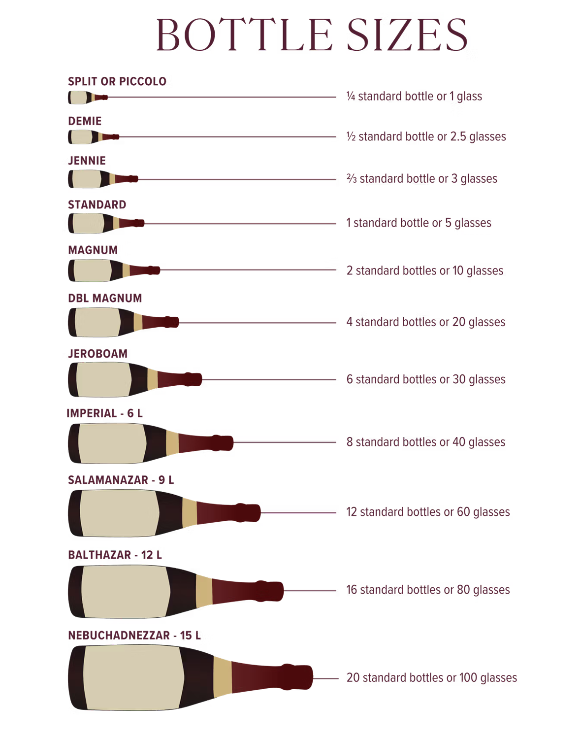 Vi kjenner alle til den klassiske 750 ml-flasken, som tilsvarer omtrent 5 glass vin. Men det finnes mange andre flaskestørrelser som tilfører både spenning og høytid til vinopplevelsen. Magnumflasken og dens enda større varianter er kjent fra festlige anledninger, der de blir et imponerende og seremonielt innslag i vinkulturen.