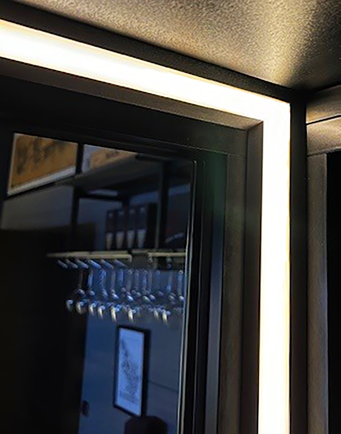 Lys er viktig for å skape riktig stemning, og vi har utviklet et eget lyssystem som kan integreres i profilskjøtene. VT lyssystem er varmhvit og kan dimmes slik at man lager den stemningen man ønsker. Systemet leveres med både manuell dimmer eller koblet opp mot app om kunden ønsker dette. Våre lysløsninger gir riktig stemning samtidig som de er skånsomme mot vinen, med minimal varmeutvikling og UV-stråling.